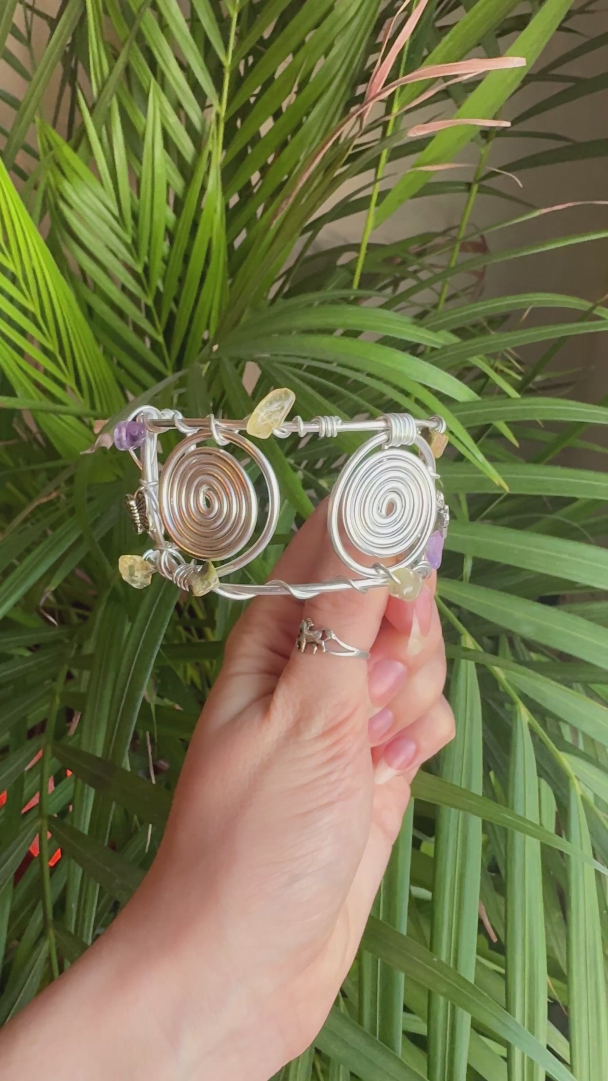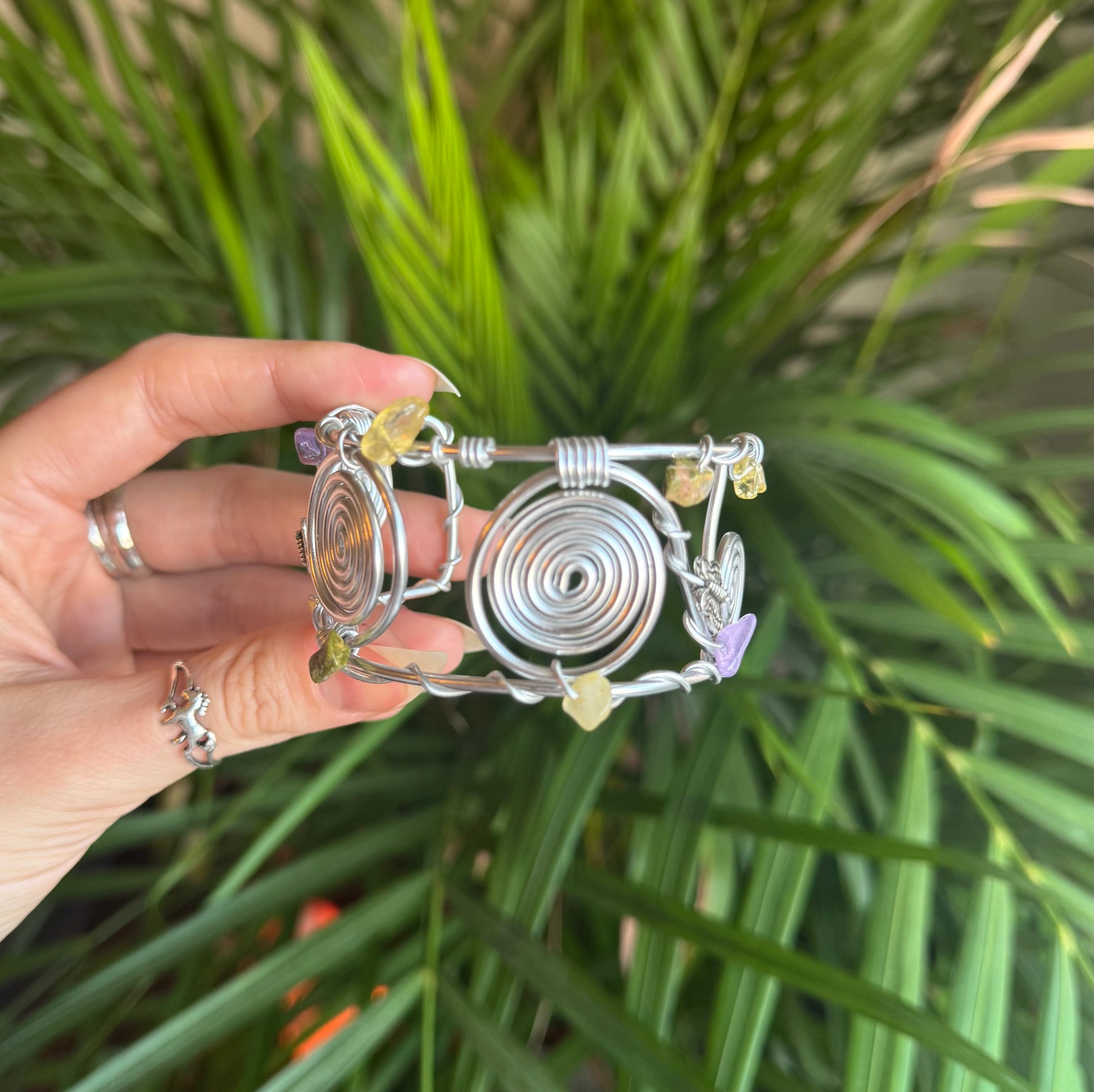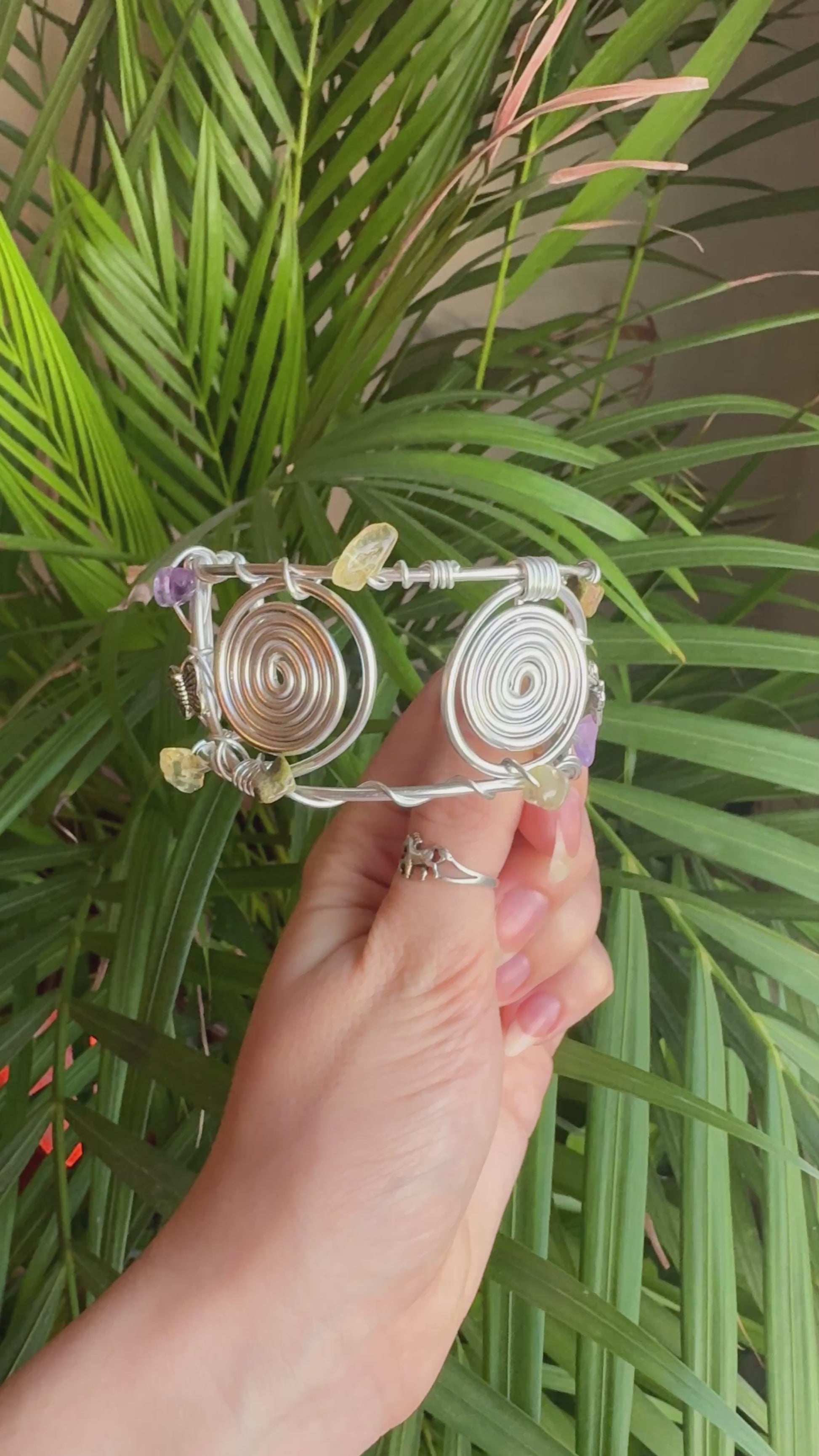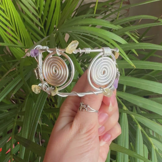 Whimsical spiral cuff bracelet with Amethyst, Unakite & Citrine crystals 🔮