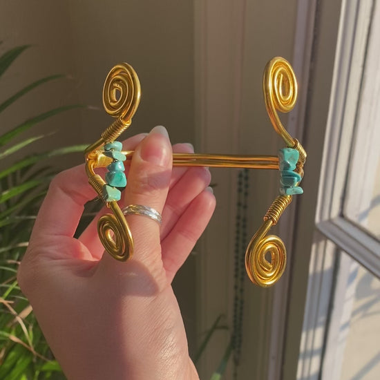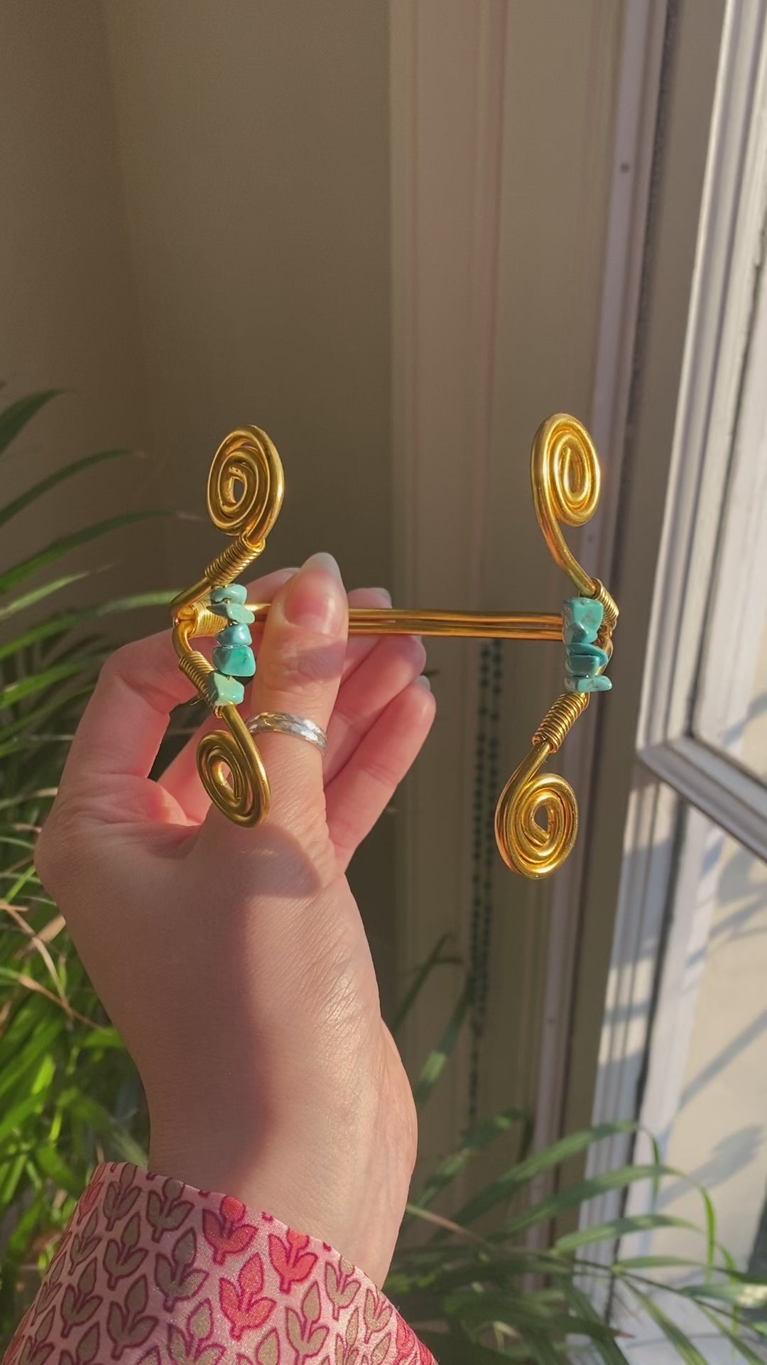 Gold spiral design arm cuff with turquoise crystals🐬🌀